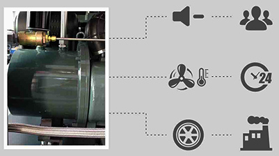 高效油冷電機效率可提升3%~5%,永磁電機與壓縮主機采用內嵌式一體軸直連結構, 結構更加緊湊,傳動效率100%。IP65防護等級,防水防塵