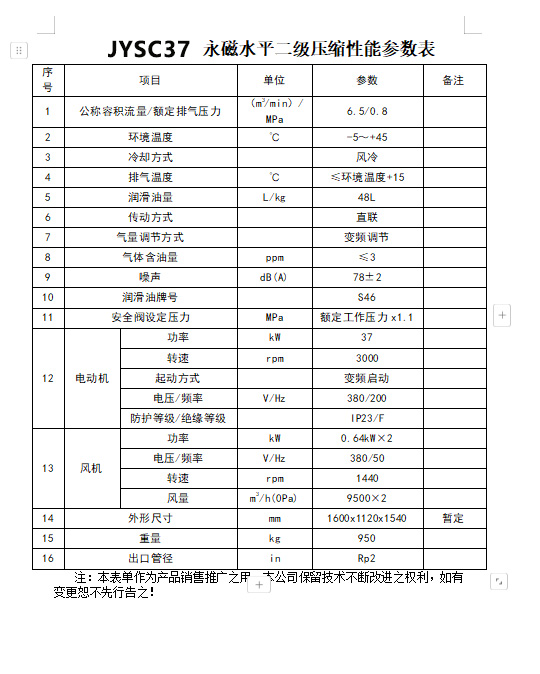 標題:37kW 水平雙級直連永磁變頻空壓機