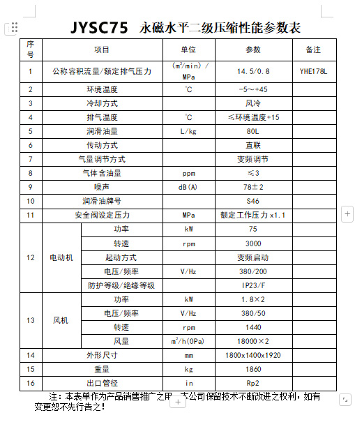 產(chǎn)品名稱:75kW 水平雙級(jí)直連永磁變頻空壓機(jī) JYSC75