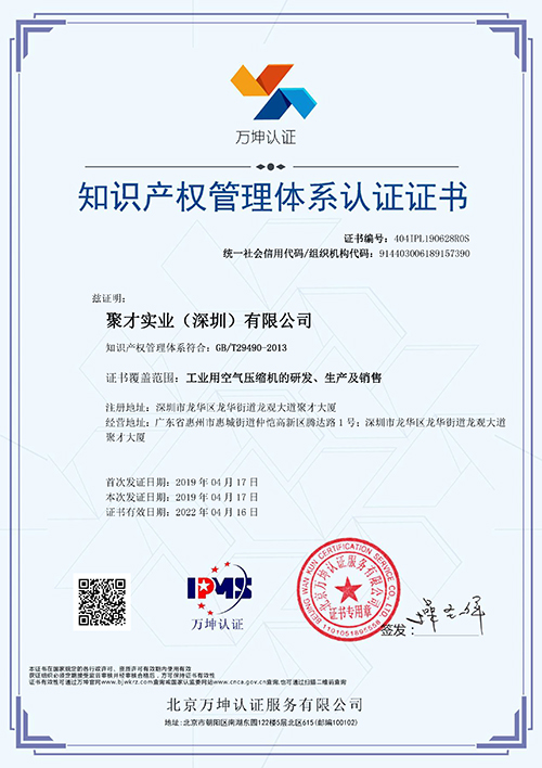 聚才實業(深圳)有限公司自創辦起,一直致力于為客戶提供整套氣體節能解決方案?,F公司擁有五十余項專利,為了更好的保護科研產品,現發展階段需要一套完整的知識產權管理體系來為技術創新保駕護航。在為期兩天嚴格的外審過程中,我司知識產權管理的相關工作得到了審核員的認可,通過了GB/T29490-2013企業知識產權管理規范的相關要求。